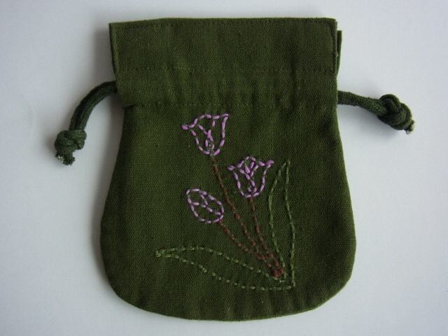 しっかりした生地、たぶん綿だと思います、の巾着袋です。